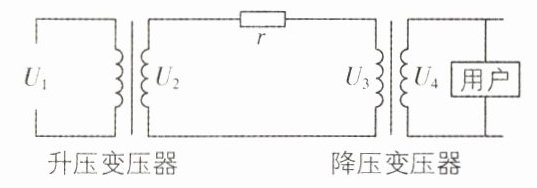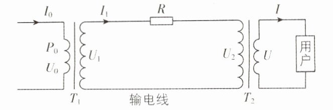 D. 若保持输入功率$P_0$不变,提高输电电压$U_1$,则$U_1$与$U_2$的差值增大