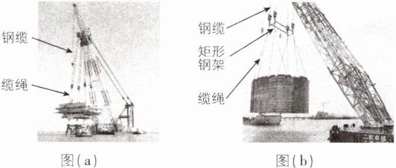 8.[内蒙古2025适应考]2024年9月,国内起重能力最大的双臂架变幅式起重船“二航卓越”号交付使用.若起重船的钢缆和缆绳通过图示两种方式连接:图(a)中直接连接,钢缆不平行;图(b)中通过矩形钢架连接,钢缆始终平行.通过改变钢缆长度(缆绳长度不变),匀速吊起构件的过程中,每根缆绳承受的拉力 ( )