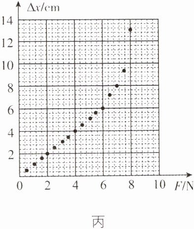 (3)该同学根据记录的数据进行处理,描绘出弹簧的形变量$\Delta x$与弹力$F$相关的点如图丙所示.