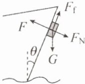 2. [广东 2023·2,4分]如图所示,可视为质点的机器人通过磁铁吸附在船舷外壁面检测船体. 壁面可视为斜面,与竖直方向夹角为θ. 船和机器人保持静止时,机器人仅受重力G、支持力$F_N$、摩擦力$F_f$和磁力F的作用,磁力垂直壁面. 下列关系式正确的是