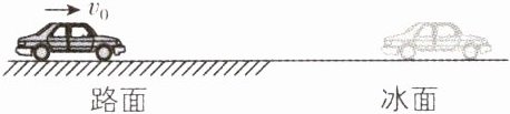 6. [四川绵阳南山中学2025届月考]如图,在平直路面上进行汽车刹车性能测试. 当汽车速度大小为$v_{0}$时开始刹车,先后经过路面和冰面(结冰路面),最终停在冰面上. 刹车过程中,汽车在路面与在冰面所受阻力大小之比为$7:1$,位移大小之比为$8:7$. 则汽车(可视为质点)进入冰面瞬间的速度大小为 ( )