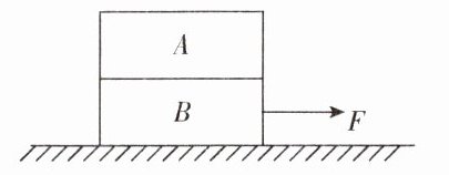 5. 如图所示,A、B两物体质量均为m = 1 kg,静止叠放在光滑的水平地面上,A、B间的动摩擦因数μ = 0.2,最大静摩擦力等于滑动摩擦力,重力加速度g = 10 m/s². 现对B施加一水平拉力F,A一直未从B上滑落,下列说法正确的是 ( )