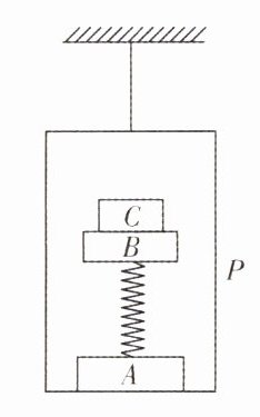 2. [辽宁葫芦岛2025届期初]如图所示,质量为M的吊篮P通过细绳悬挂在天花板上,物块A、B、C质量均为m,B、C叠放在一起,B物块固定在轻质弹簧上端,弹簧下端与A物块相连,三物块均处于静止状态,弹簧的劲度系数为k(弹簧始终在弹性限度内),重力加速度为g,下列说法正确的是 ( )