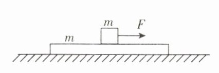 4.[江苏宿迁中学2025届月考]如图所示,长木板放置在水平面上,一物块置于长木板的中央,长木板和物块的质量均为$m$,物块与长木板间的动摩擦因数为$\mu$,长木板与水平面间的动摩擦因数为$\frac{\mu}{4}$,已知最大静摩擦力与滑动摩擦力大小相等,重力加速度为$g$。现对物块施加一水平向右的拉力,大小为$F = 2\mu mg$,则长木板的加速度大小是 ( )