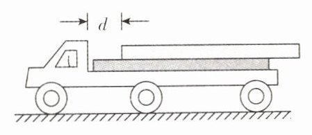 6.[湖北省实验中学2025届质检]如图所示,一辆在平直公路上匀速行驶的货车装载有规格相同的质量均为$m$的两块长板,两长板沿车行方向错开放置,上层板最前端到驾驶室的距离为$d$,上、下层板间的动摩擦因数为$\mu$,下层板与车厢间的动摩擦因数为$2.5\mu$。该货车紧急刹车时的最大加速度为$a_{0}=3\mu g$,重力加速度为$g$。假设最大静摩擦力等于滑动摩擦力,不计空气阻力. 要使货车在紧急刹车时上层板不撞上驾驶室,则货车车速不得超过 ( )