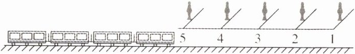 10. [广东惠州中学2025届期中]站台上$5$位旅客在各自车厢候车线处候车,若动车每节车厢长为$l$,动车进站时做匀减速直线运动. 站在$2$号候车线处的旅客发现$1$号车厢经过他所用的时间为$t$,动车停下时该旅客刚好在$2$号车厢门口(2号车厢最前端),如图所示,忽略车厢连接处长度,则 ( )