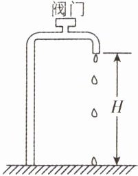 9. [海南2025届期中](多选)如图所示,通过调节自来水管阀门每隔相同的时间$T$滴下一滴水,当第$4$滴水刚要滴下时. 第$1$滴水刚好到达地面. 已知管口到水平地面的高度为$H$,水滴均可视为质点,忽略空气阻力,下列说法正确的是 ( )
