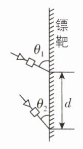 4. 在飞镖比赛中,某选手先后两次将飞镖在同一出手点以不同的水平速度掷出,飞镖插入竖直镖靶,相关参数如图所示. 已知飞镖飞行时的速度方向即为镖尖指向,不计任何阻力,那么该选手出手位置距镖靶的水平距离是 ( )