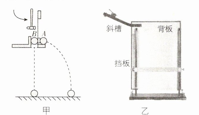 (2)为得到A球做平抛运动的轨迹,使用如图乙所示的装置,实验前,先将一张带有小方格的白纸和复写纸固定在装置的背板上,A球落到倾斜的挡板上后,就会挤压复写纸,在白纸上留下印迹. 上下调节挡板,通过多次实验,在白纸上记录A球所经过的多个位置,下列步骤必要的是____(填序号).
