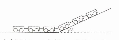 5. [浙江名校协作体2024联考]一列质量为$m$(分布均匀)、长为$l$的玩具小火车从平面上以速度$v_{0}$依靠惯性冲上一个倾角为$\alpha = 30^{\circ}$的固定斜面,假设小火车经过水平面和斜面连接处不损耗能量,不计一切摩擦,重力加速度为$g$. 则关于玩具小火车爬坡的过程(以水平面为零势能面),下列说法正确的是 ( )