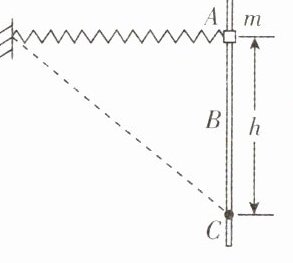4. [北京朝阳2025届月考]如图所示,轻质弹簧一端固定,另一端与质量为$m$、套在粗糙竖直固定杆$A$处的圆环相连,弹簧水平且处于原长. 圆环从$A$处由静止开始下滑,经过$B$处时速度最大,到达$C$处时速度为零,$AC = h$. 圆环在$C$处获得一竖直向上的速度$v$,使其恰好能回到$A$. 弹簧始终在弹性限度内,重力加速度为$g$,则圆环 ( )