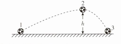 2. [浙江2024年1月·3,3分]如图所示,质量为m的足球从水平地面上位置1被踢出后落在位置3,在空中达到最高点2的高度为h,则足球( )