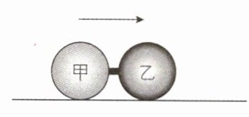 7. [陕西西安田家炳中学2025届月考](多选)如图所示,光滑水平面上甲、乙两球间粘少许炸药,一起以0.5 m/s的速度向右做匀速直线运动. 已知甲、乙两球质量分别为0.1 kg和0.2 kg. 某时刻炸药突然爆炸,分开后两球仍沿原直线运动,从爆炸开始计时,经过3.0 s,两球之间的距离为$x = 2.7\ m$,则说法正确的是 ( )