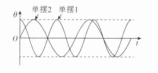 4. [甘肃2024一模]如图所示,图像为两单摆的振动图像,θ为摆线偏离竖直方向的角度(θ < 5°). 两单摆的摆球质量相同,则 ( )