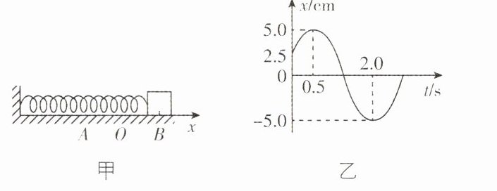 2. [北京通州区2025届月考]如图甲所示,以平衡位置O为原点,光滑水平面上的弹簧振子在A、B之间做简谐运动,某时刻开始计时,以向右为正方向,其偏离平衡位置的位移x随时间t变化的图像如图乙所示. 下列说法正确的是 ( )