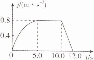 11. [江西宜春丰城中学2025届月考]航天员的训练、竞技体育的指导、汽车和电梯的设计等多种工作都用到急动度的概念,急动度$j$是描述加速度$a$随时间$t$变化快慢的物理量,即$j=\frac{\Delta a}{\Delta t}$,它可以用来反映乘客乘坐交通工具时的舒适程度,当交通工具的急动度为零时乘客感觉最舒适. 如图所示为某新能源汽车从静止开始启动的一小段时间内的急动度$j$随时间$t$变化的规律. 则下列说法正确的是 ( )