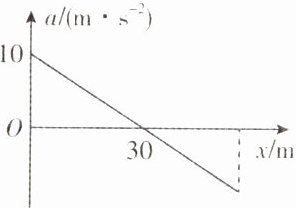 10. [广西部分学校2025届开学考](多选)一辆警车沿平直街道巡逻,速度大小为10 m/s,在某位置(坐标原点$O$)发现前方某处发生警情,立即前往处理,警车的加速度$a$随警车到$O$点的距离$x$变化的关系如图所示. 下列说法正确的是 ( )