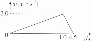 8. [辽宁2025届开学考]某航拍仪从地面由静止启动,在升力作用下加速竖直向上起飞. 当上升到一定高度时,航拍仪逐渐失去动力. 假设航拍仪在运动过程中沿竖直方向运动且机身始终保持水平,根据如图所示的$a - t$图像得出的结论中正确的是 ( )