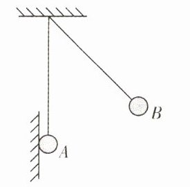 2.[湖南长沙雅礼中学2024月考]如图所示,质量为$m_1$、$m_2$的$A$、$B$小球(可视为点电荷)带同种电荷,电荷量分别为$q_1$、$q_2$,它们用等长的细线悬挂在同一点,由于库仑斥力的作用,小球$A$靠在竖直光滑墙上,悬挂$A$的细线沿竖直方向,$A$、$B$均处于静止状态. 由于某种原因,两小球之间的距离变为原来的一半,则其原因可能是 ( )