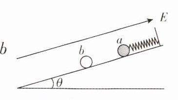 2. [重庆巴蜀中学2025届阶段考]如图所示,倾角为θ的光滑绝缘斜面上存在两个带电荷量完全相同的小球a、b,其中小球a与一端固定的绝缘轻质弹簧相连,整个系统处于沿斜面向上的匀强电场中,当a、b在相距L处静止时,弹簧恰好处于原长. 已知重力加速度为g,则下列说法正确的是 ( )