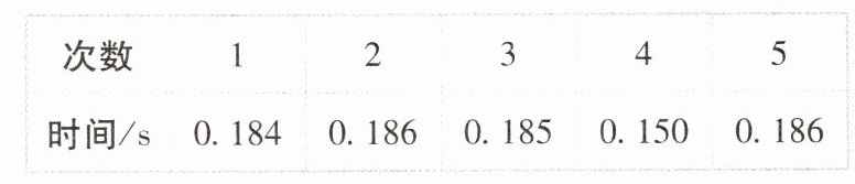 (3)剔除第4组数据,从表格其他数据算出时间的平均值约为0.185 s,并利用选定的直尺的量程L代入$g=\frac{2L}{t^{2}}$,得$g\approx8.77\ m/s^{2}$,结果与当地重力加速度差距较大,上述数据处理存在的问题是______.