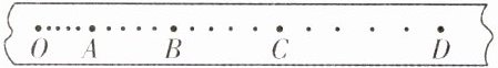 (3)用刻度尺量得$OA = 1.20\ cm$,$OB = 2.80\ cm$,$OC = 4.80\ cm$,$OD = 7.20\ cm$,打B点时纸带的速度大小为______m/s,纸带运动的加速度大小为______$m/s^{2}$.