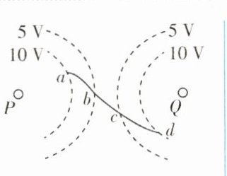 1.(多选)两个固定的点电荷P、Q所形成电场的等势线(等势线对称)如图中的虚线所示,一带电粒子以某一初速度从图中的d点进入电场,仅在静电力的作用下运动,运动轨迹如图中的实线所示.下列说法正确的是 ( )