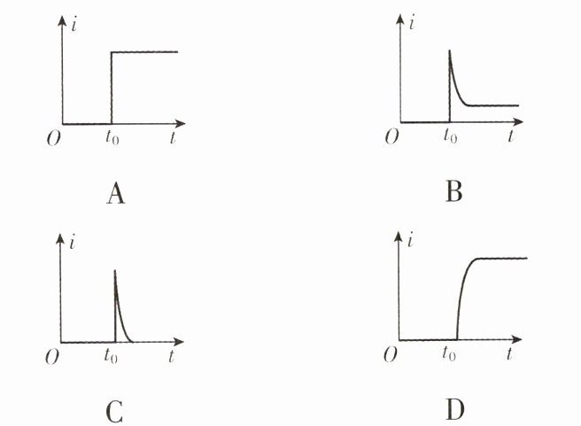 2. [江苏镇江2025届开学考]用电流传感器测量通过小灯泡的电流,$t_{0}$时刻加上恒定电压,若考虑金属灯丝电阻与温度的关系,下列表示小灯泡电流随时间变化的图线可能正确的是 ( )