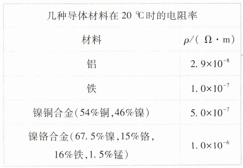 (4)最后可由表达式$\rho$=____(用$D、L、R_{x}、\pi$表示)得到电阻丝的电阻率. 根据计算结果可知,绕制滑动变阻器的电阻丝的材料最可能是下列材料中的____.