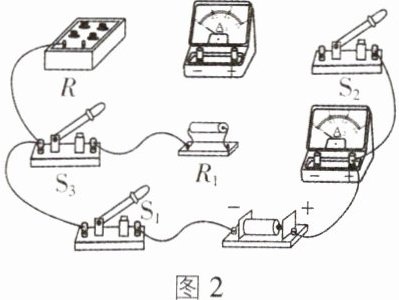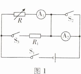 (2)由电路可知电阻$R_1$两端电压$U=(I_2 - I_1)R_1$,则电阻箱负载和电流表$A_1$电压之和为$U=(I_2 - I_1)R_1$,则$R_{A1}=\frac{(I_2 - I_1)R_1}{I_1}-R_0$。