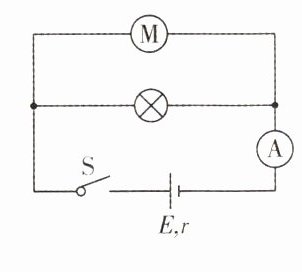 (2)根据$P_{灯}=U_{灯}I_{灯}$可得流过小灯泡的电流大小$I_{灯}=0.5A$,则流过电动机的电流大小$I_M = I - I_{灯}=1.5A$,电动机的输出功率$P_{出}=U_{外}I_M - I_M^2R_M = 13.65W$,电动机的工作效率$\eta=\frac{P_{出}}{U_{外}I_M}\times100\% = 91\%$。
