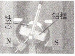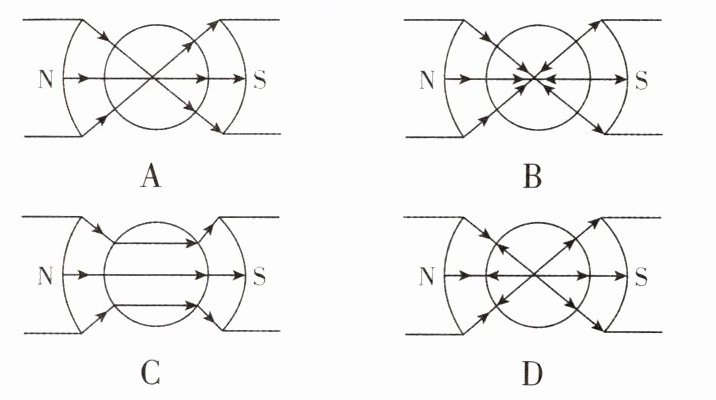 3. [广东揭阳2024月考]如图所示为实验室所用电流表的主要部件.绕在铝框上的线圈通电以后,在磁极与软铁芯构成的磁场中受力而转动.某同学据此现象思考软铁芯内部的磁感线分布,并提出了如下猜想,可能正确的是( )