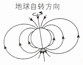 4. [四川自贡2025届期中]地球本身是一个大磁体,其磁场分布示意图如图所示.学术界对于地磁场的形成机制尚无共识.一种理论认为地磁场主要源于地表电荷随地球自转产生的环形电流.基于此理论,下列判断正确的是( )