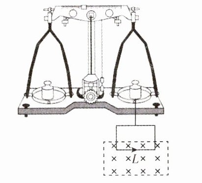 5. [广东2025届调研]如图所示为等臂电流天平. 它的右臂挂有一个质量为m₀的矩形金属线圈,匝数为N,底边长为L,下半部分悬在匀强磁场中,线圈平面与磁场垂直. 当线圈中通有电流I时,调节砝码使两臂达到平衡,然后使电流反向、大小不变,这时需要在左盘中增加质量为m的砝码,才能使两臂达到新的平衡. 已知重力加速度为g,则磁场的磁感应强度B的大小为( )