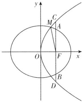 设M(x₀,y₀),则$\frac{x₀²}{4c²}$ + $\frac{y₀²}{3c²}$ = 1,y₀² = 4cx₀。