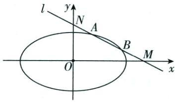 设直线 l 的方程为 $\frac{x}{m}$ + $\frac{y}{n}$ = 1,A(x₁, y₁),B(x₂, y₂),点 M、N 的坐标,线段 AB、MN 中点相同,即 $\frac{x₁ + x₂}{2}$ = $\frac{m + 0}{2}$,$\frac{y₁ + y₂}{2}$ = $\frac{0 + n}{2}$,点共线 $\frac{y₁ - y₂}{x₁ - x₂}$ = $\frac{0 - n}{m - 0}$。