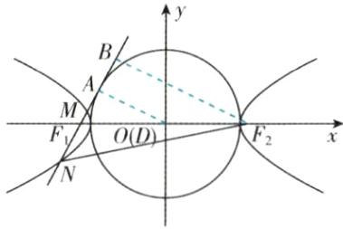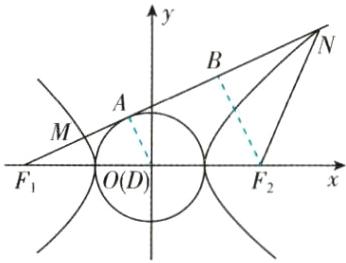 [深度解析]由双曲线的对称性,不妨令双曲线$C$:$\frac{x^{2}}{a^{2}} - \frac{y^{2}}{b^{2}} = 1(a > 0,b > 0)$,左、右焦点分别为$F_{1}(-c,0)$,$F_{2}(c,0)$,圆$D$:$x^{2} + y^{2} = a^{2}$。