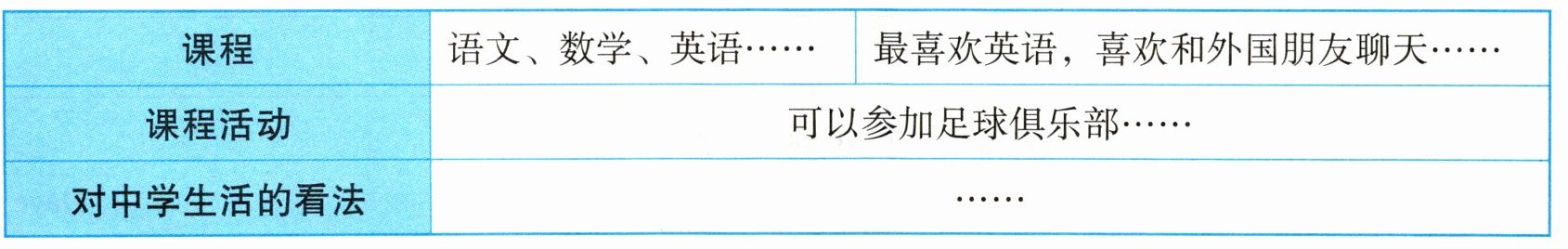 There are 7 subjects in my school. They are Chinese, math, English, biology and so on. (课程) My favorite subject is English, because learning English can help me have a conversation with foreigners and I can make friends with them. (最爱的学科及原因) After class, I often play soccer on the playground and I can join the soccer club. (课后活动) It is relaxing and interesting. My school life is very meaningful. (对中学生活的看法)