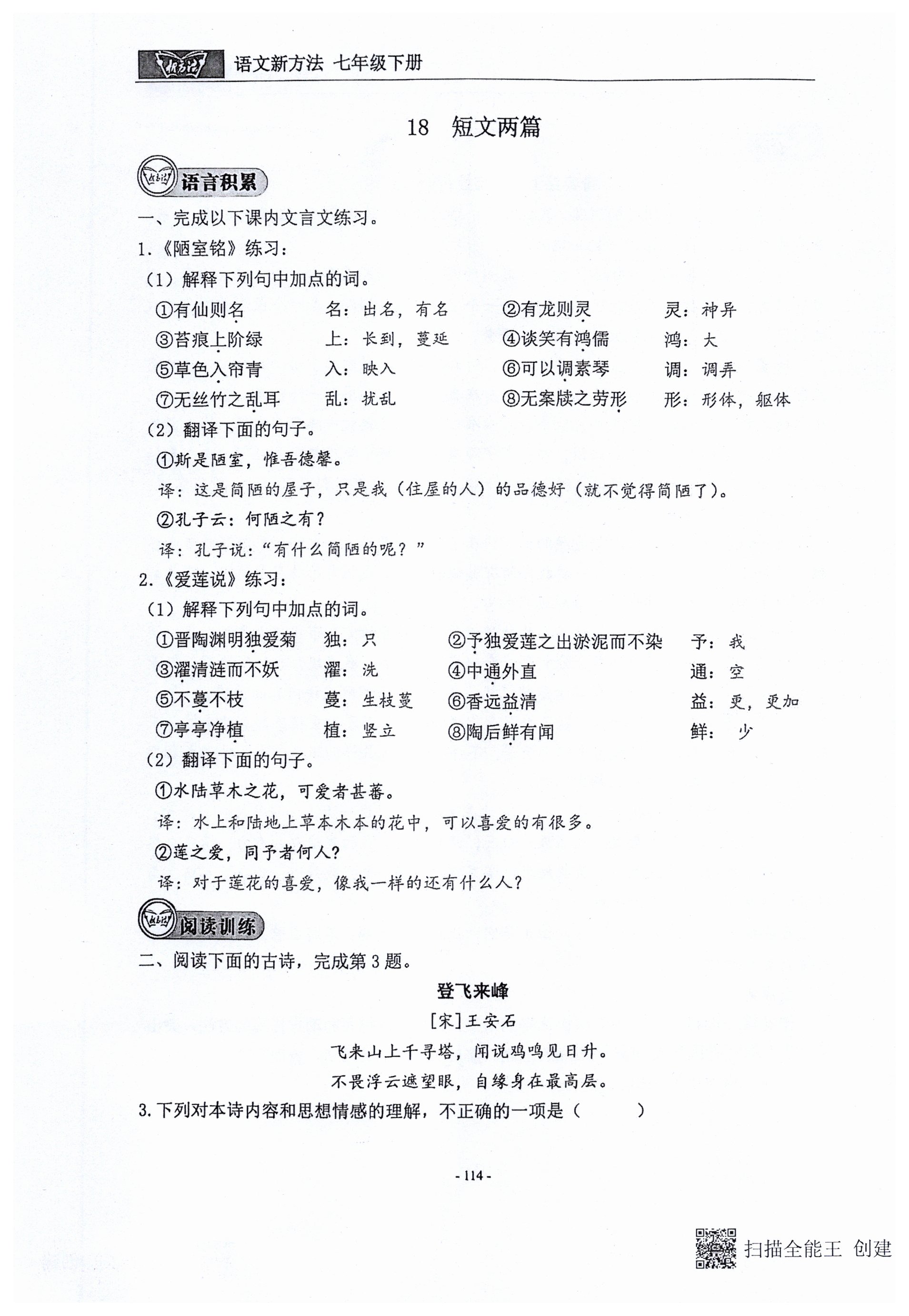 注:目前有些书本章节名称可能整理的还不是很完善,但都是按照顺序排列的,请同学们按照顺序仔细查找。练习册 2025年语文新方法七年级下册 答案主要是用来给同学们做完题方便对答案用的,请勿直接抄袭。