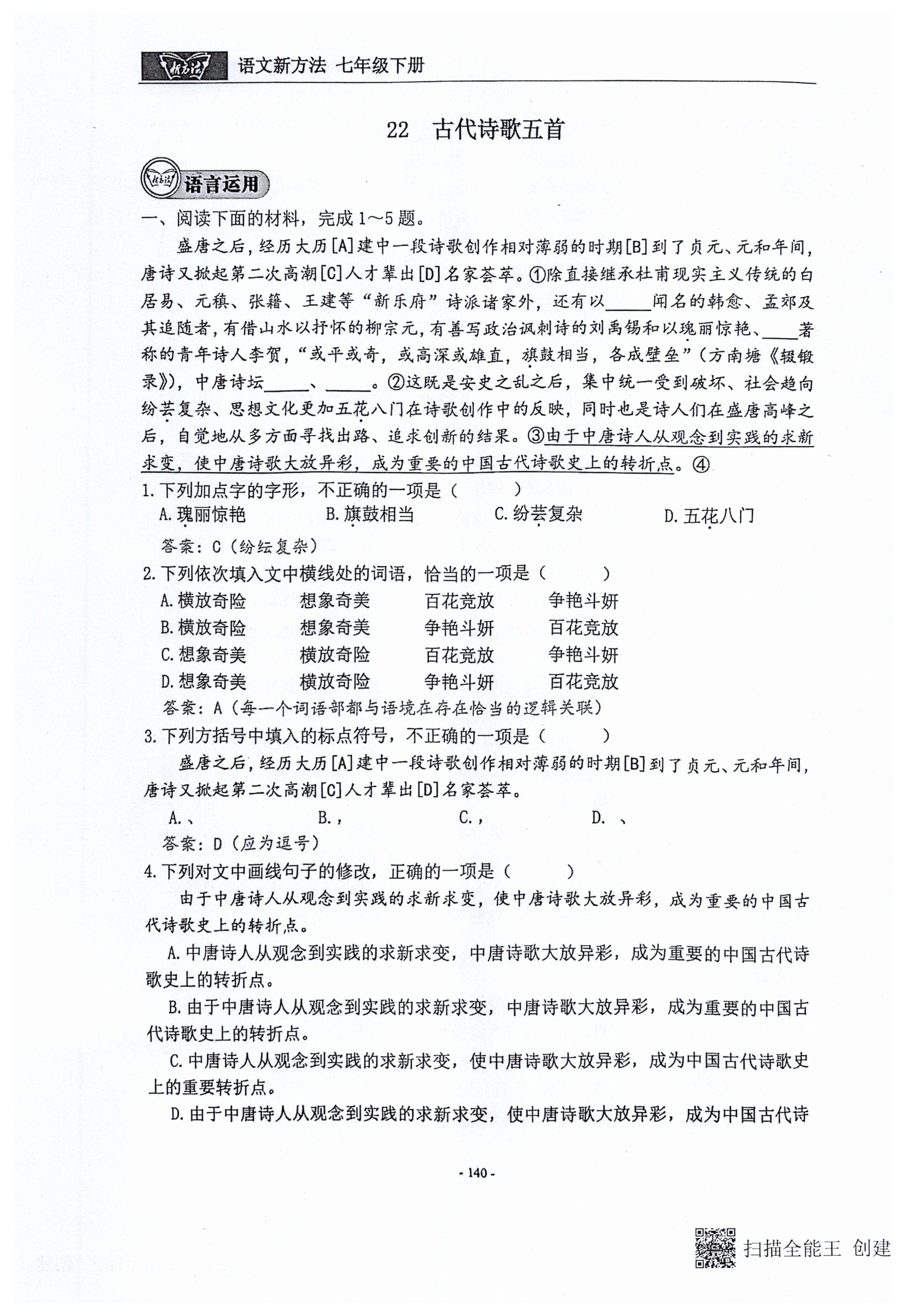 注:目前有些书本章节名称可能整理的还不是很完善,但都是按照顺序排列的,请同学们按照顺序仔细查找。练习册 2025年语文新方法七年级下册 答案主要是用来给同学们做完题方便对答案用的,请勿直接抄袭。
