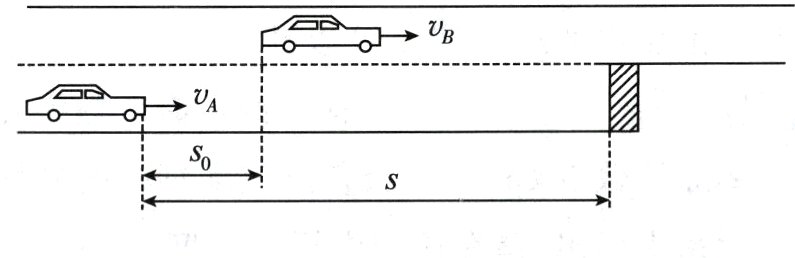$A$车运动的位移$x_{A}=v_{A}t_{0}-\frac{1}{2}a_{0}t_{0}^{2}$