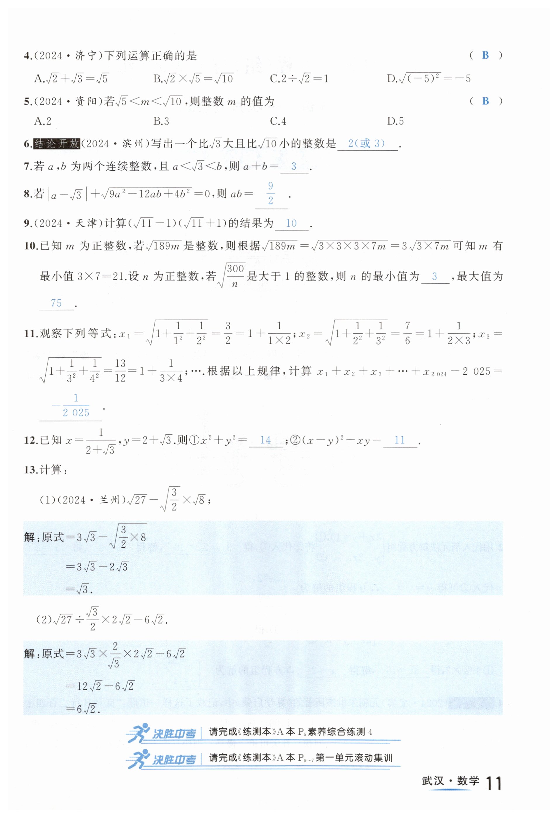 注:目前有些书本章节名称可能整理的还不是很完善,但都是按照顺序排列的,请同学们按照顺序仔细查找。练习册 2025年中考导学案数学武汉专版 答案主要是用来给同学们做完题方便对答案用的,请勿直接抄袭。