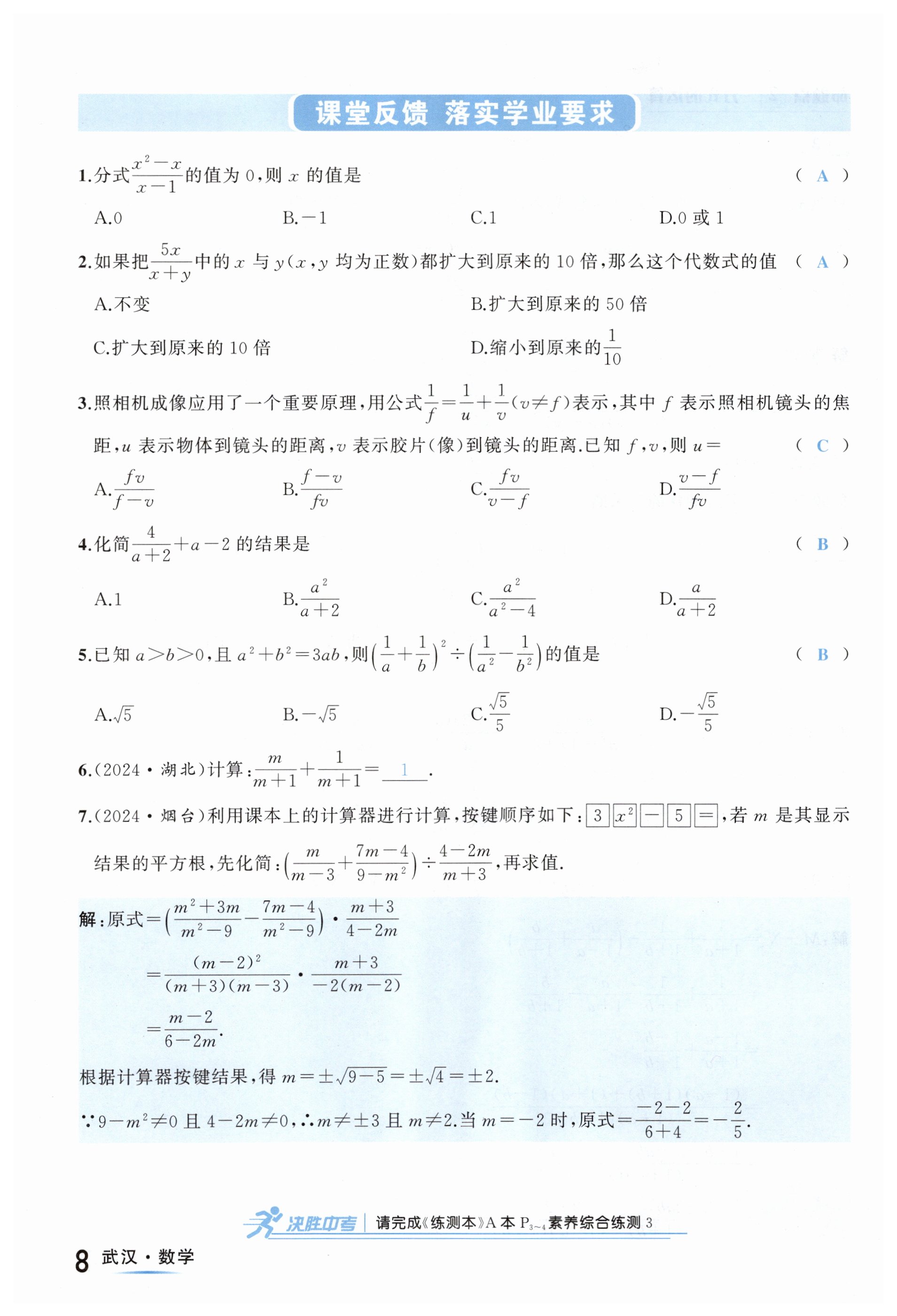注:目前有些书本章节名称可能整理的还不是很完善,但都是按照顺序排列的,请同学们按照顺序仔细查找。练习册 2025年中考导学案数学武汉专版 答案主要是用来给同学们做完题方便对答案用的,请勿直接抄袭。