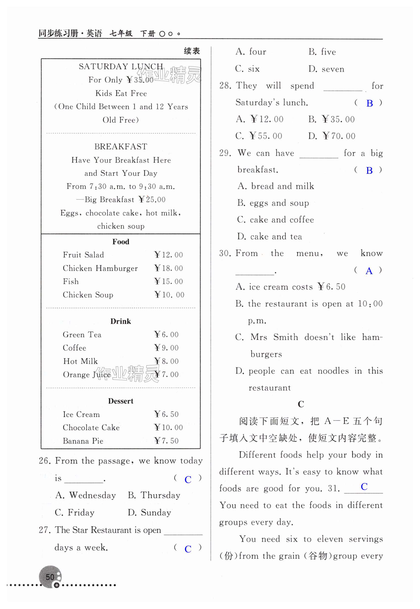 注:目前有些书本章节名称可能整理的还不是很完善,但都是按照顺序排列的,请同学们按照顺序仔细查找。练习册 2025年同步练习册人民教育出版社七年级英语下册人教精通版新疆专版 答案主要是用来给同学们做完题方便对答案用的,请勿直接抄袭。
