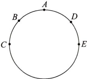 5. (多选)两个人以不同的速率同时从圆形轨道的$A$点出发,分别沿$ABC$和$ADE$方向行走,经过一段时间后在$F$点相遇(图中未画出$F$点),从出发到相遇的过程中,描述两人运动情况的物理量相同的是( )