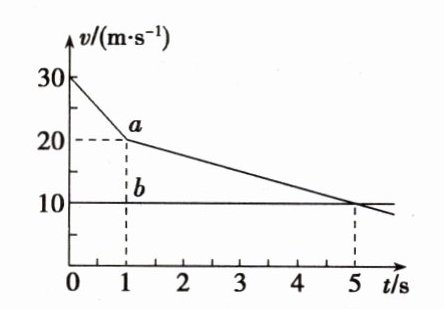 2. 一辆小汽车以30m/s的速度匀速行驶在高速公路上,突然发现正前方30m处有一辆大卡车以10m/s的速度同方向匀速行驶,小汽车紧急刹车,刹车过程中刹车突然失灵。如图所示,图线a、b分别为小汽车和大卡车的v - t图像(忽略刹车反应时间)。以下说法正确的是( )