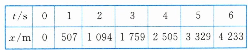 (1)根据表中数据可知,飞行器在每1s内的位移依次为507m,587m,665m,746m,824m,904m,则相邻1s内的位移之差接近Δx = 80m,可判断飞行器在这段时间内近似做匀加速运动。