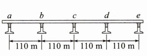 4.BC 解析:根据初速度为0的匀加速直线运动位移公式x = $\frac{1}{2}$at²可知,从开始运动时起,相邻相等时间内的位移之比为1:3:5:...:(2n - 1),而由题意可知,列车从开始记录起,前三个相邻T时间内的位移之比为(3 - 1)d:(6 - 3)d:(10 - 6)d = 2:3:4,所以开始记录时列车的速度不为0,故A错误;列车在相邻两个T时间内的位移之差均为Δx = d = aT²,则列车运动的加速度为a = $\frac{d}{T²}$,且由前面分析可推知列车第四个T时间内的位移为5d,则4T时刻恰好记录“第15杆”,故B、C正确;在2T时刻,列车的速度等于从T时和3T时之间的平均速度,即v₂_T = $\frac{(10 - 3)d}{2T}$ = $\frac{7d}{2T}$,故D错误。
