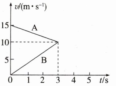 B 解析:根据速度 - 时间图像与时间轴所围“面积”的大小等于位移大小,由题图知,t = 3s时大卡车的位移为x_b = v_b t = 10×3m = 30m,小汽车的位移为xₐ = $\frac{1}{2}$×(30 + 20)×1m + $\frac{1}{2}$×(20 + 15)×2m = 60m,则xₐ - x_b = 30m,所以在t = 3s时发生追尾事故,故B正确,A、C错误;由v - t图像可知在t = 5s时两车速度相等,小汽车相对于大卡车的位移Δx = $\frac{1}{2}$×(20 + 10)×1m + $\frac{1}{2}$×10×4m = 35m < 40m,则不会发生追尾事故,两车最近时相距Δs = x₀ - Δx = 5m,故D错误。