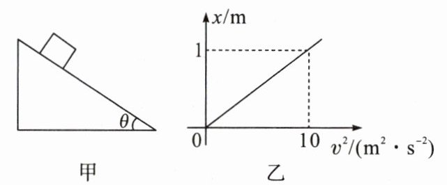 1. 如图甲所示,小物块从足够长的光滑斜面顶端由静止自由滑下。下滑位移为x时的速度为v,其x - v²图像如图乙所示,取g = 10m/s²,则斜面倾角θ为( )